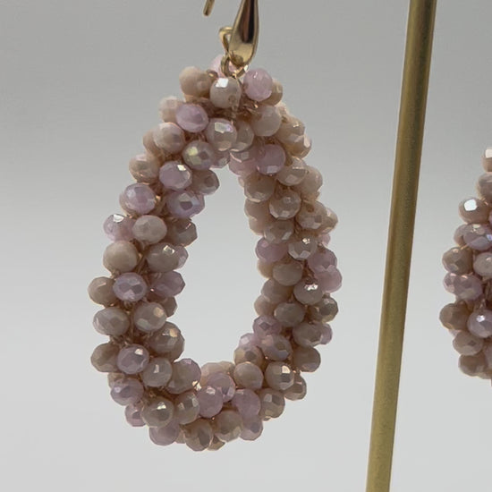 Druppelvormige oorbellen van glaskraaltjes in zacht roze en beige