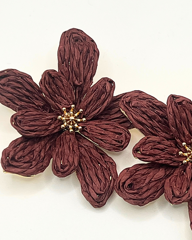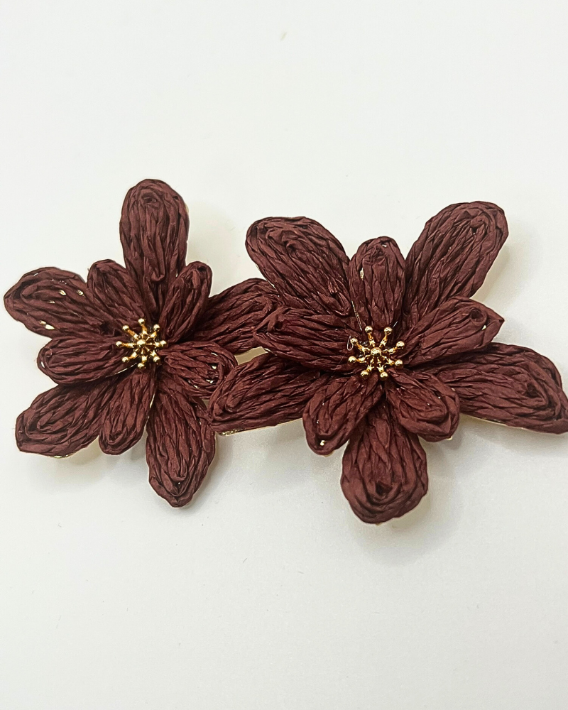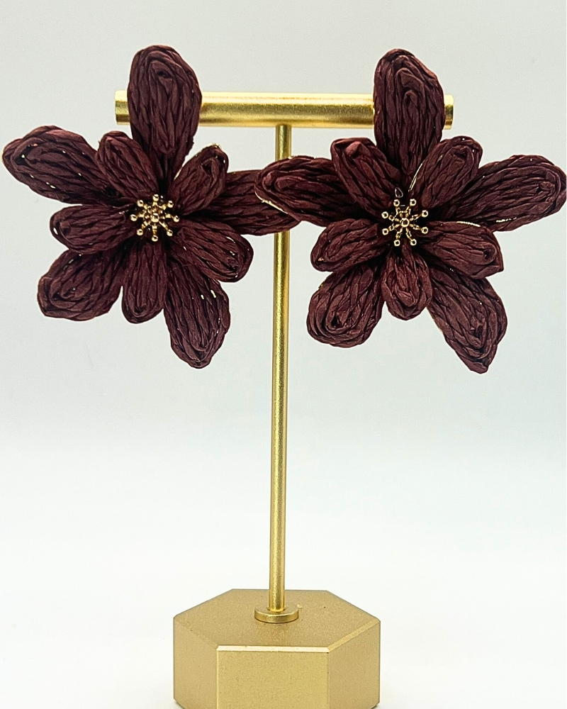 Deze prachtige bordeaux blossom bloemoorbellen zijn helemaal van nu! Licht van gewicht met een goudkleurige achterkant.