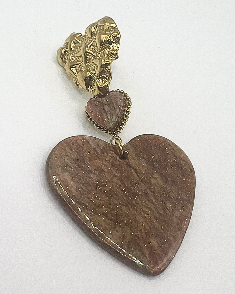 Bruine en gouden hartoorbellen
