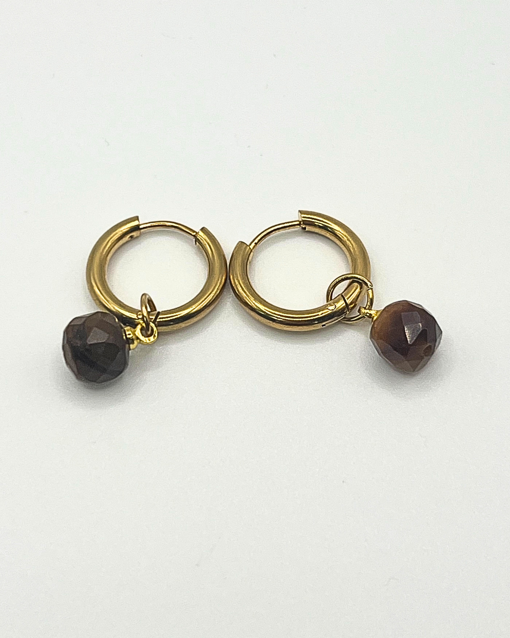 Deze klassieke elegante oorringen zijn gemaakt van roestvrijstaal met een hanger van een facetgeslepen natuursteen in bruin en cognac tinten. Perfect voor als je houdt van een klassieke minimalistische look met een warme, natuurlijke uitstraling.
