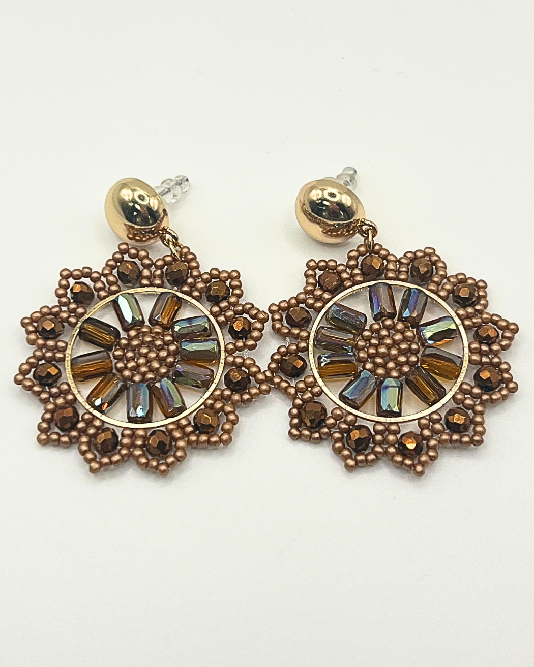 Mandala oorbellen van kralen in diverse bronstinten